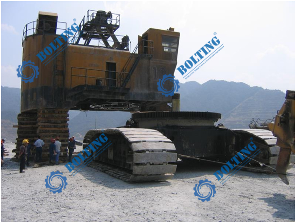 電鏟是千萬噸級露天礦山主要采掘設(shè)備之一,生產(chǎn)率高,作業(yè)率高,操作成本低,是目前采礦業(yè)公認(rèn)的機(jī)型。電鏟由行走裝置、回轉(zhuǎn)裝置、工作裝置、潤滑系統(tǒng)、供氣系統(tǒng)組成。鏟斗是電鏟的主要部件,它直接承受被挖掘礦石的作用力,因而磨損較大,斗桿也是電鏟挖掘過程中的主要部件之一,它的作用是連接和支持鏟斗,并將推壓作用傳送給鏟斗,鏟斗在推壓和提升力的共同作用下完成挖掘土壤的動作;其行走機(jī)構(gòu)中最為核心的履帶裝置,經(jīng)過相關(guān)的傳動機(jī)構(gòu)最終使其在地面直接移動!